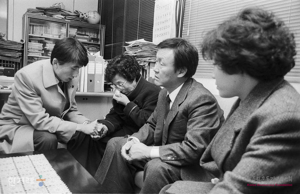 - 1988년 12월 21일 정부의 12.20조치에 따라 복역중이던 시국 공안사건 관련자 1백 28명이 전국 교도소에서 풀려난 가운데 박종철씨 고문치사사건의 원인이 됐던 박종운(왼쪽)씨가 수배해제 발표가 난 뒤 21일 처음으로 박종철 가족을 만나 인사를 하고 있다.