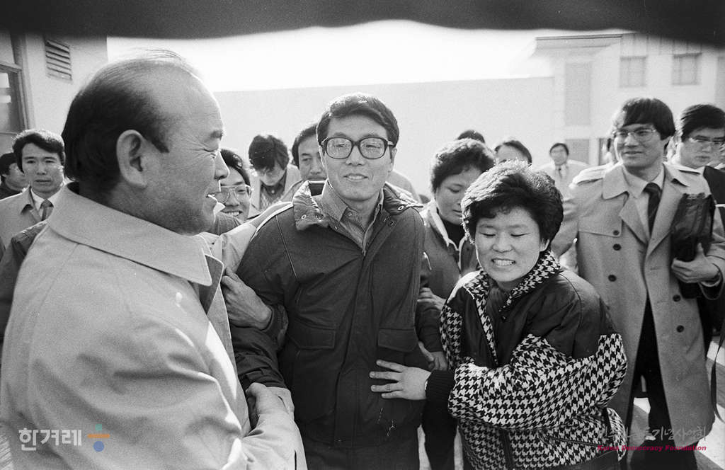 - 1988년 12월 21일 오전 10시 정부의 12.20조치에 따라 복역중이던 시국 공안사건 관련자 1백 28명이 전국 교도소에서 풀려난 가운데 1979년 남민전 사건으로 사형을 선고받았으나 세계 수학자들의 항의덕분에 무기징역으로 복역중이던 안재구 경북대 수학교수를 비롯한 김현장씨가 대구교도소앞에서 환영나온 시민 학생들에게 인사를 하고 있다.