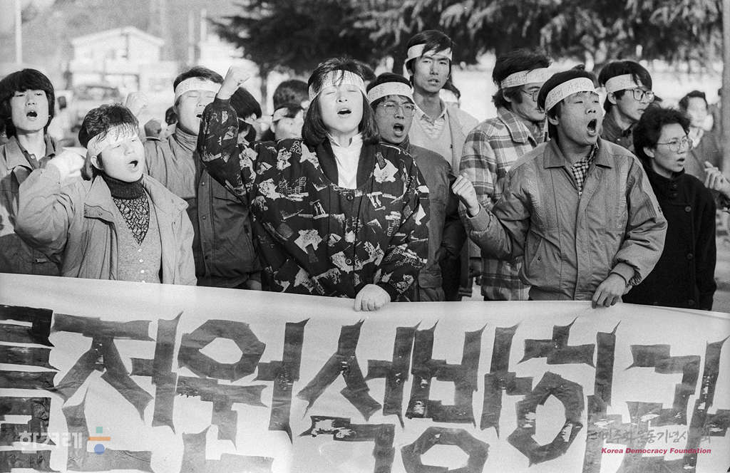 - 1988년 12월 21일 오전 10시 정부의 12.20조치에 따라 복역중이던 시국 공안사건 관련자 1백 28명이 전국 교도소에서 풀려난 가운데 공주교도소앞에서 양심수 환영을 하기 위해 온 시민 학생들이 양심수 전원석방을 요구하며 시위를 벌리고 있다.