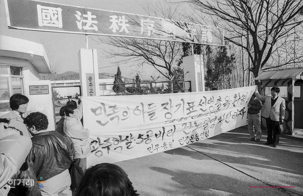 - 1988년 12월 21일 오전 10시 정부의 12.20조치에 따라 복역중이던 시국 공안사건 관련자 1백 28명이 전국 교도소에서 풀려난 가운데 공주교도소앞에서 양심수 환영을 하기 위해 온 시민 학생들이 양심수 전원석방을 요구하며 시위를 벌리고 있다.