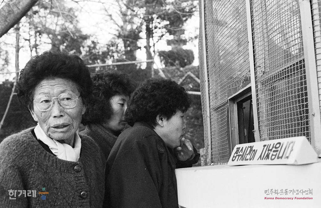 - 1988년 12월 21일 오전 10시 정부의 12.20조치에 따라 복역중이던 시국 공안사건 관련자 1백 28명이 전국 교도소에서 풀려난 가운데 전주교도소앞에서 가족들이 풀려나기를 기다리고 있다.