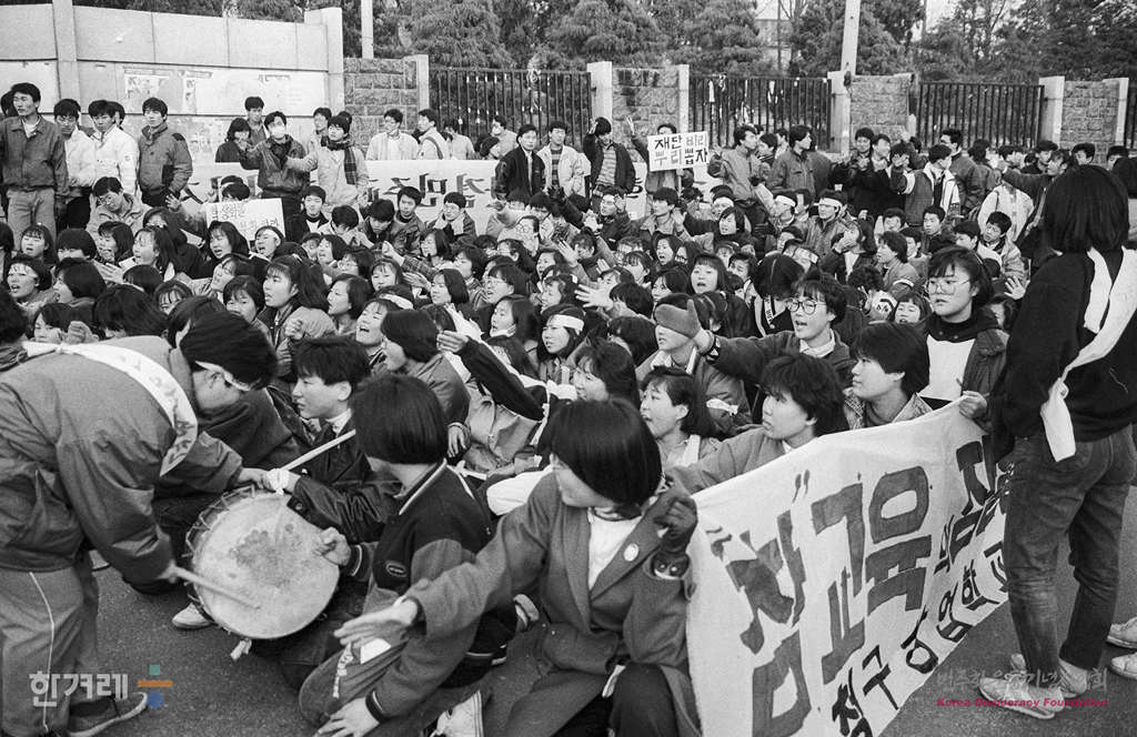 - 1988년 12월 22일 오후2시30분 정희여상 민신고 공항고 명지고 창덕여고 등 서울시내 10여개 고교 남녀학생 4백여명은 서울 연세대학교 대강당에서 사학비리 척결을 위한 고등학생 궐기대회를 마친뒤 서울시교위까지 도보행진을 벌이려다 경찰의 제재로 교문앞에서 농성을 하고 있다.
