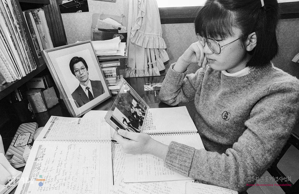- 1988년12월 22일 원자력발전소에서 10년동안 방사선 관리사로 일해온 한전 직원 박신우씨가 지난 10월1일 암으로 사망하자 그 가족들이 진상규명을 요구하고 나섰다. 사진은 서울 개포동 현대아파트에서 박씨 가족들이 암치료기간 부인 윤경숙씨에게 원전 내부에서의 피폭실태를 적어놓은 글을 보고 있다.
