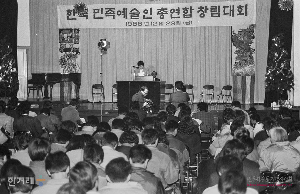 - 1988년 12월 23일 오후 2시 분단 이후 최초의 진보적 예술인 대중조직인 한국민족예술인총연합(민예총)이 서울 명동 YWCA 대강당에서 창립총회를 갖고 정식 출범했다.