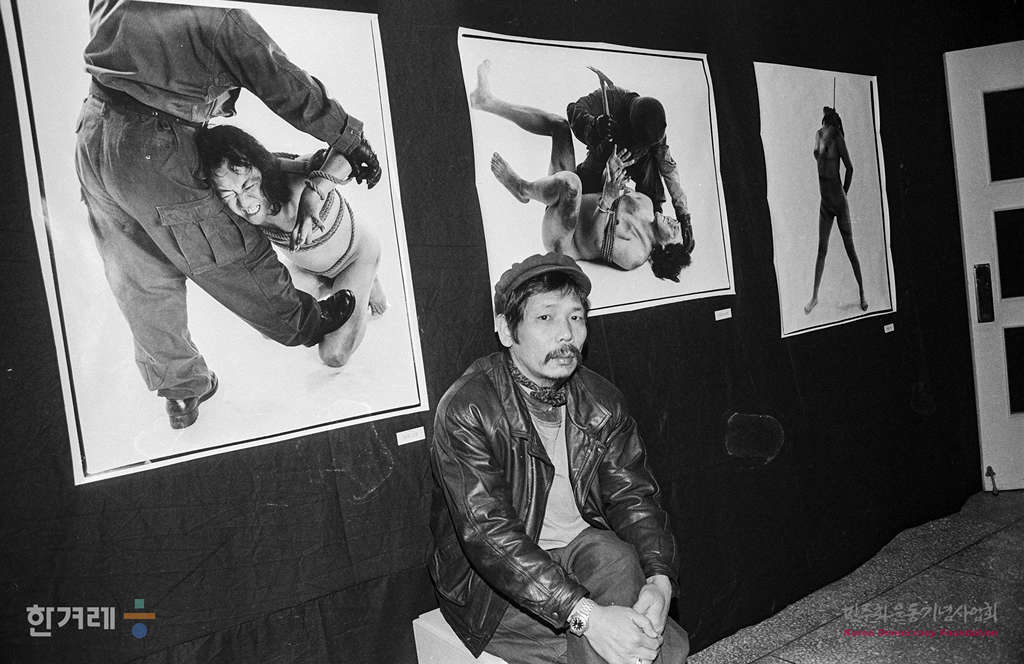 - 1988년 12월 23일 고문에 의한 충격적인 인간성 파멸의 현장을 영상에 담은 고문사진전이 서울 인사동 그림마당민에서 열려 김영수 사진작가가 작품앞에서 사진촬영을 하고 있다.