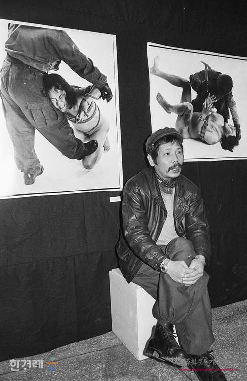 - 1988년 12월 23일 고문에 의한 충격적인 인간성 파멸의 현장을 영상에 담은 고문사진전이 서울 인사동 그림마당민에서 열려 김영수 사진작가가 작품앞에서 사진촬영을 하고 있다.