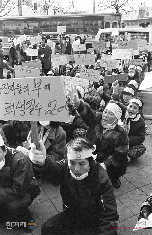 - 1988년 12월 26일 서울 전농동 세입자들이 동대문구청앞에서 철거에 앞서 세입자 이주대책을 요구하며 시위를 벌이고 있다.
