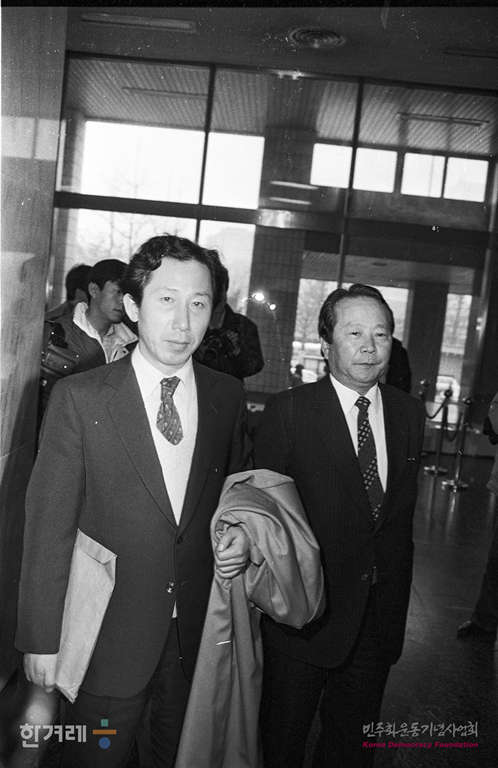 - 1988년 12월 27일 김근태씨를 고문한 성명불상의 고문기술자로 밝혀진 경기도경 공안분실장 이근안 경감에 대한 수사를 5공비리 척결차원에서 덤찰 5공비리 특별수사부가 조사토록 결정되자 김근태 서울지검으로 출두하고 있다