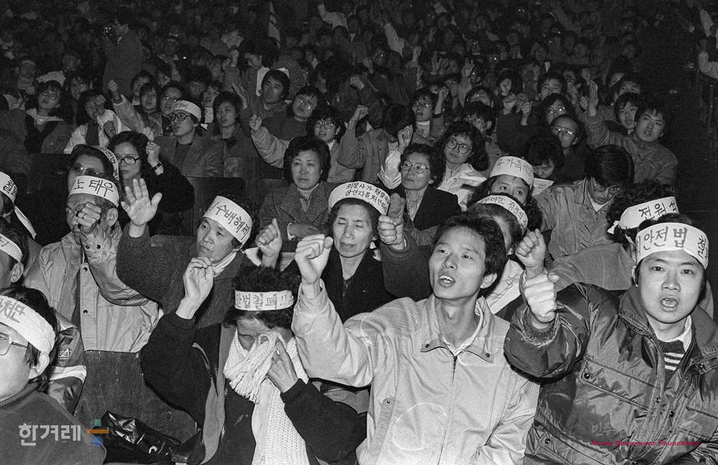 - 1988년 12월 27일 오후3시 광주학살 부정비리 책임자처벌 및 양심수 전원석방 쟁취를 위한 12.21석방자대회가 연세대 대강당에서 열려 재야인사 노동자 학생 등 1천5백여명이 참석한 가운데 열리고 있다.