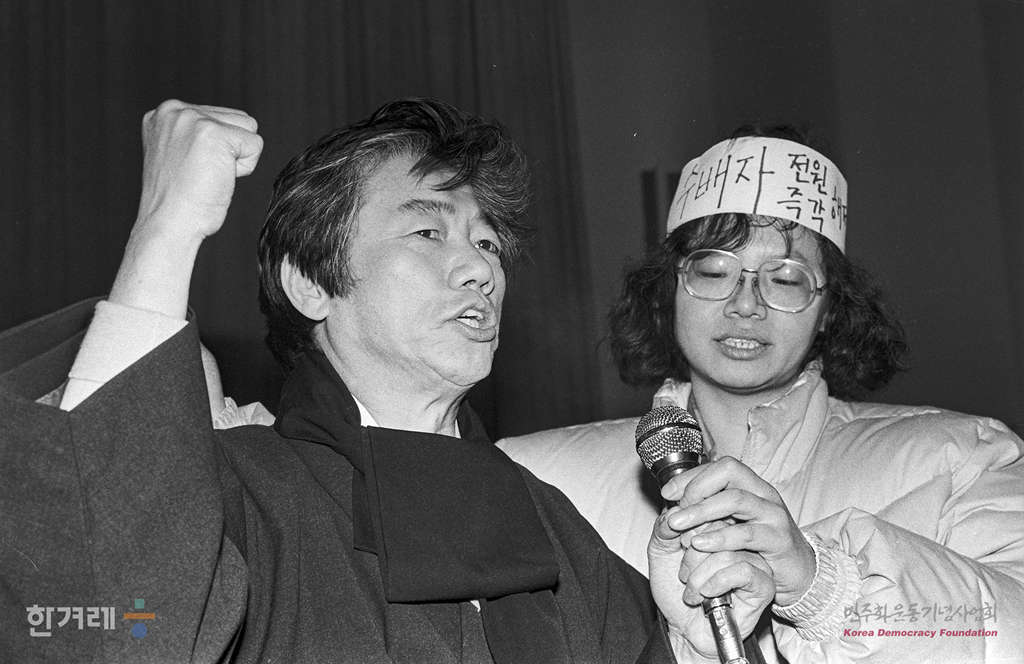 - 1988년 12월 27일 오후3시 광주학살 부정비리 책임자처벌 및 양심수 전원석방 쟁취를 위한 12.21석방자대회가 연세대 대강당에서 열려 재야인사 노동자 학생 등 1천5백여명이 참석한 가운데 열리고 있다.