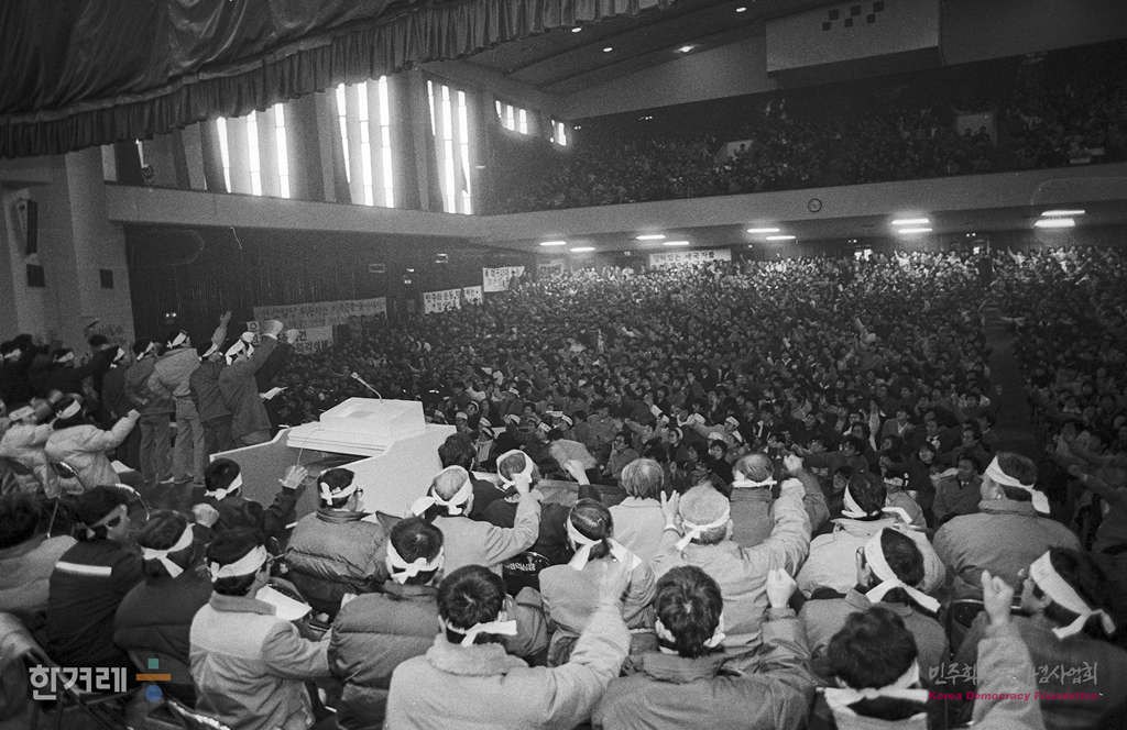 - 1988년 12월 27일 오후3시 광주학살 부정비리 책임자처벌 및 양심수 전원석방 쟁취를 위한 12.21석방자대회가 연세대 대강당에서 열려 재야인사 노동자 학생 등 1천5백여명이 참석한 가운데 열리고 있다.