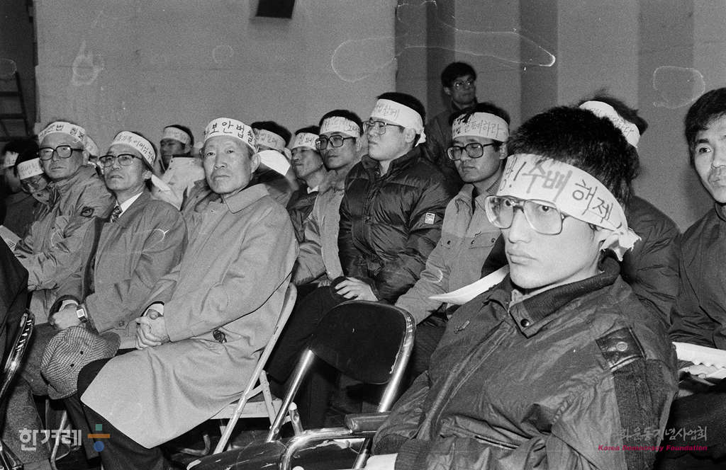 - 1988년 12월 27일 오후3시 광주학살 부정비리 책임자처벌 및 양심수 전원석방 쟁취를 위한 12.21석방자대회가 연세대 대강당에서 열려 재야인사 노동자 학생 등 1천5백여명이 참석한 가운데 열리고 있다.
