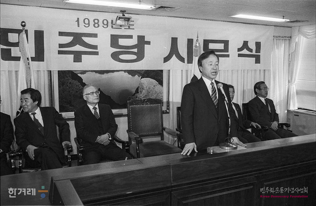- 1989년 1월 4일 김영삼총재를 비롯한 통일민주당 의원들이 당사에서 시무식 겸 기자회견을 갖고 있다.
