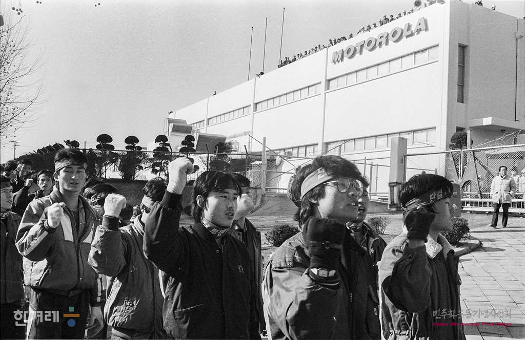 - 1989년 1월 4일 오후1시 지난해 12월 30일 농성도중 강제해산된 모토로라 한국지사 노조원 1백50여명은 서울 성동구 광장동 회사앞에 모여 구속된 도충환 노조위원장 석방과 노조인정을 요구하며 농성을 벌이고 있다