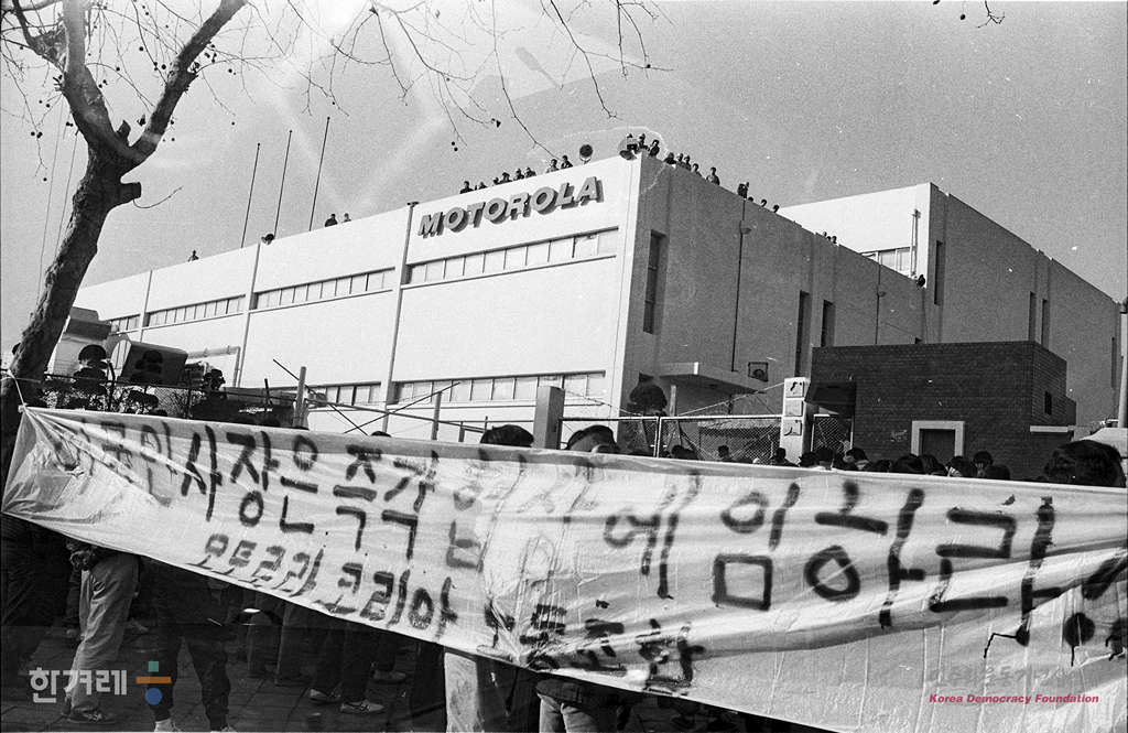 - 1989년 1월 4일 오후1시 지난해 12월 30일 농성도중 강제해산된 모토로라 한국지사 노조원 1백50여명은 서울 성동구 광장동 회사앞에 모여 구속된 도충환 노조위원장 석방과 노조인정을 요구하며 농성을 벌이고 있다