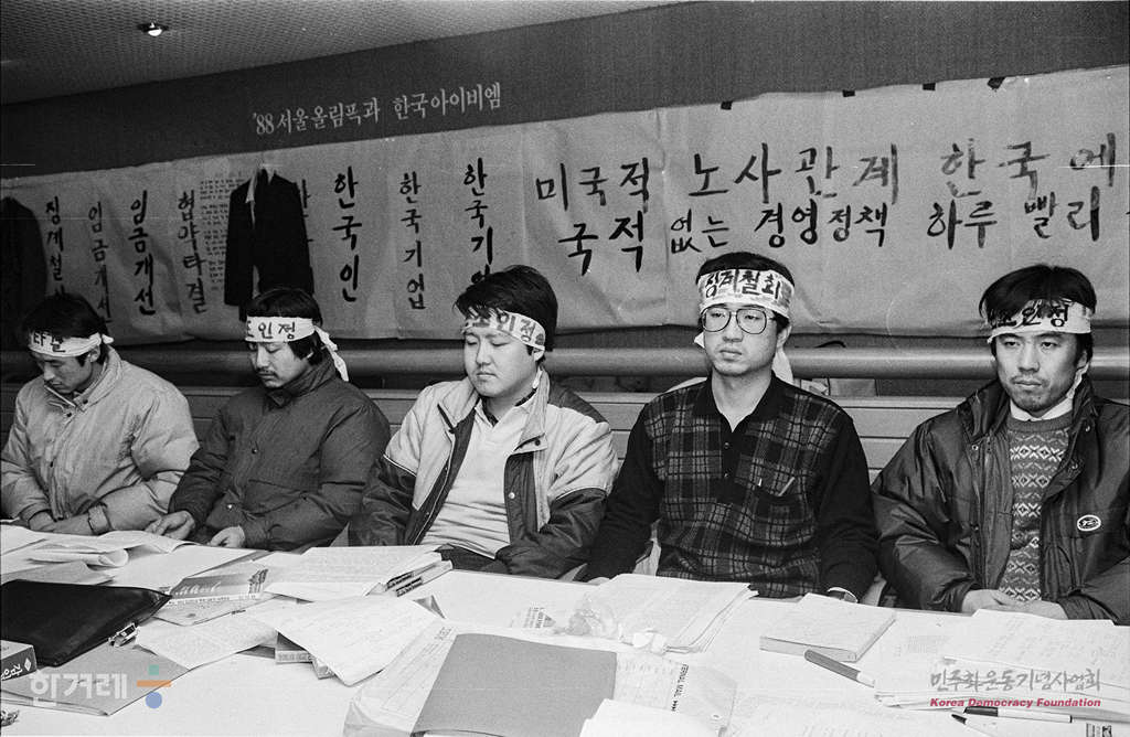 - 1989년 1월 7일 지난해 12월 29일부터 파업에 들어간 한국IBM 노조간부들이 서울 영등포구 여의도도동 한국IBM 본사건물 1층 로비에서 단식농성을 하고 있다.