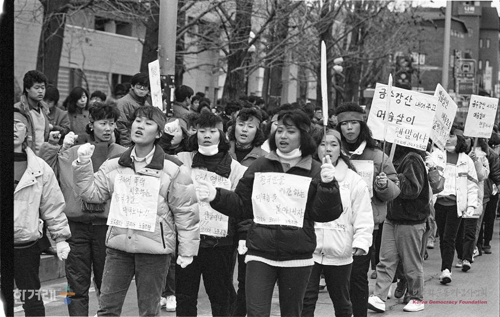 - 1989년 1월 8일 오후2시 서울 대학로에서 모토로라 한국IBM등 외국기업노조협의회와 서울지역노조협의회 소속 노동자 및 학생 시민 1천여명이 모여 모토로라 방화살인규탄과 미국기업 노조탄압 분쇄 1차 결의대회를 하고 있다.