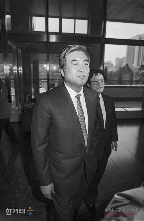- 1989년 1월11일 5공화국시절 청와대 민정수석비서관을 지낸 이학봉씨가 연합철강 주식 강제인수과정에서의 직권남용 공갈 등 협의로 검찰소환을 받고 출두하고 있다.