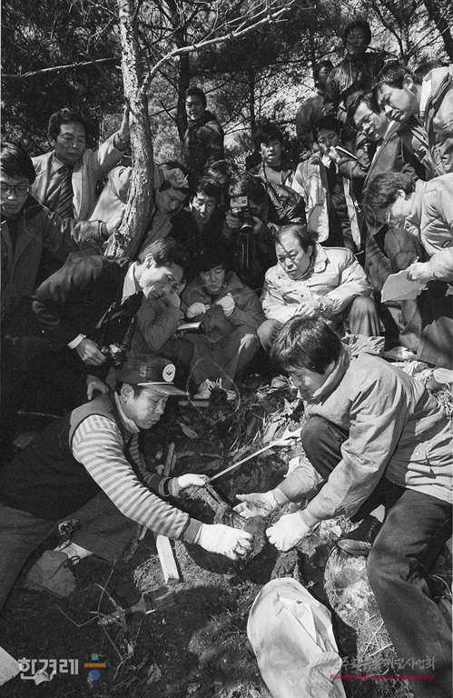 - 1989년 1월 14일 광주특위 야 3당 간사들과 유가족들이 지켜보는 가운데 광주시 동구 부엉산에서 머리 왼쪽부위에 총상으로 추정되는 상처를 입은 20대 남자의 사체가 발견돼 발굴팀이 사체발굴 작업을 벌이고 있다.