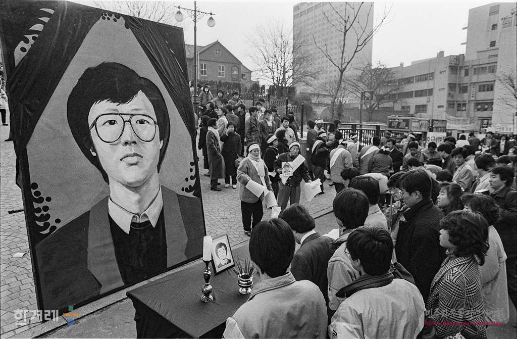 - 1989년 1월 14일 오후 6시 치안본부 대공분실에서 조사를 받다 고문으로 숨진 박종철씨의 2주기를 맞아 재야인사를 비롯해 학생 시민 5천여명이 참석한 가운데 서울 명동성당 문화관에서 민주열사 박종철 2주기 추모 및 노태우 정권퇴진 결의대회를 하고 있다.