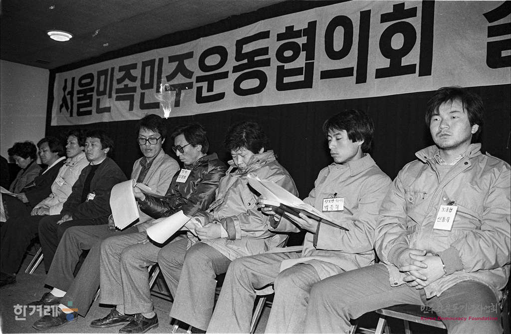 - 1989년 1월 15일 오후 서울지역 재야단체의 통합조직인 서울민족민주운동협의회가 서울 여의도 여성백인회관에서 창립대회를 하고 있다.