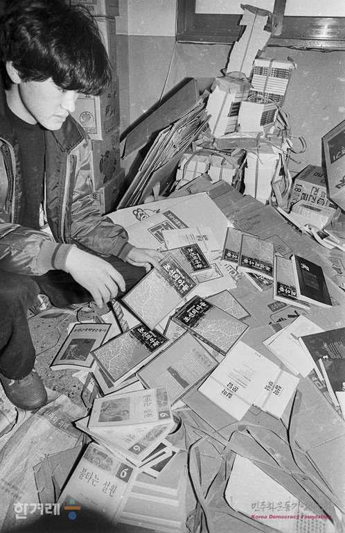 - 1989년 1월 18일 오전 10시 서울지검이 검찰청 직원과 경찰을 동원해 서울시내 6개 출판사와 서점에 대한 압수 수색을 실시한 가운데 북한관계 서적을 출판했다는 이유로 압수 수색을 당한 서울 서대문구 냉천동 112 도서출판 한마당 사무실에 책과 사무집기 등이 어지럽게 흩어져 있다.