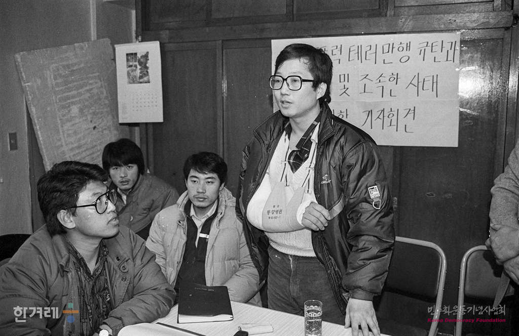 - 1989년 1월 19일 오후1시 권용목 전 현대엔진 노조위원장이 서울 용산구 갈월동 서울지역노동조합협의회 사무실에서 기자회견을 갖고 현대노조원 테러사건에 대한 철저한 진상규명과 책임자 처벌을 위한 국정조사권을 발동하고 청문회를 열 것을 요구하고 있다.