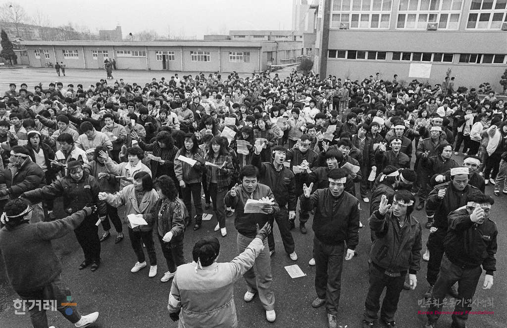 - 1989년 1월 21일 원진레이온 노동자들이 경기도 양주군 미금면 도농리 원진레이온 공장안에서 임금인상 등 단체협약 체결을 촉구하며 농성을 벌이고 있다.