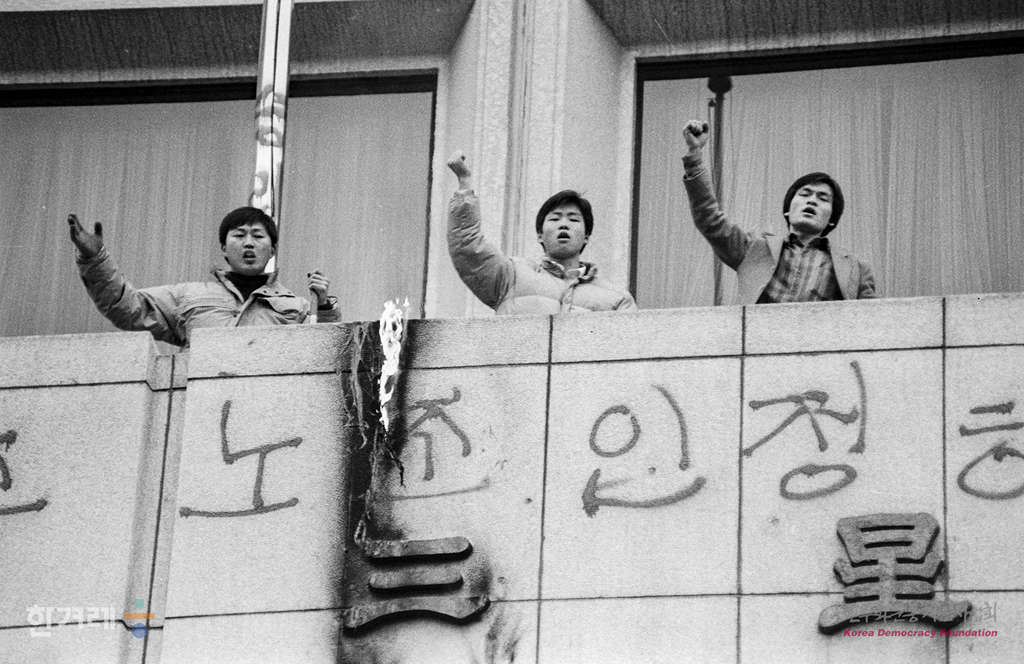 - 1989년 1월 19일 삼성중공업 민주노조 쟁취위 소속 노동자 6명과 서총련 산화 노동운동탄압 분쇄를 위한 청년학생 결사대 소속 대학생 13명이 서울 중구 남대문로 삼성 본관 3층 베란다를 점거하고 노조탄압 살인폭력 이건희를 구속하라는 플래카트는 내걸고 시위를 벌이고 있다.