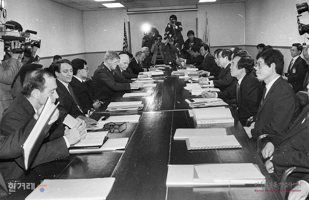 - 1989년 1월 20일 한미주둔군지위협정(SOFA)의 개정을 위한 외무부는 주한미군 당국과 제2차 회의를 용산 미군기지내 회의실에서 미군범죄에 대한 수사 및 재판관할권과 미군기지에 고용된 한국인 근로자의 노사관계 규정 등의 개정 필요성에 대한 요구하고 있다.