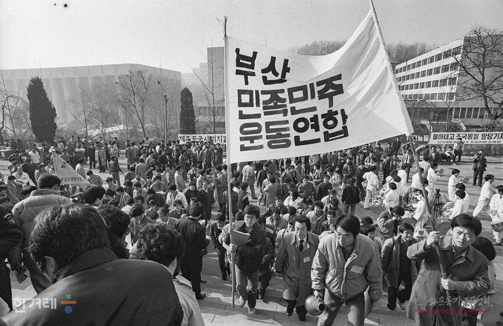 - 1989년 1월 21일 오후2시 재야 민족민주운동세력의 전국통합조직인 전국민족민주운동연합(전민련)이 서울 연세대 대강당에서 결성대회를 갖고 정식출범하고 있다. 서울민족민주운동협의회 등 지역통합단체 12개와 전국노동운동단체협의회 등 부문통합단체 8개등 모두 20갸의 참가단체로 출범한 전민련은 2백여개의 개별운동단체를 포괄하고 있어 건국이후 최대규모의 재야통합단체로 평가되고 있다.
