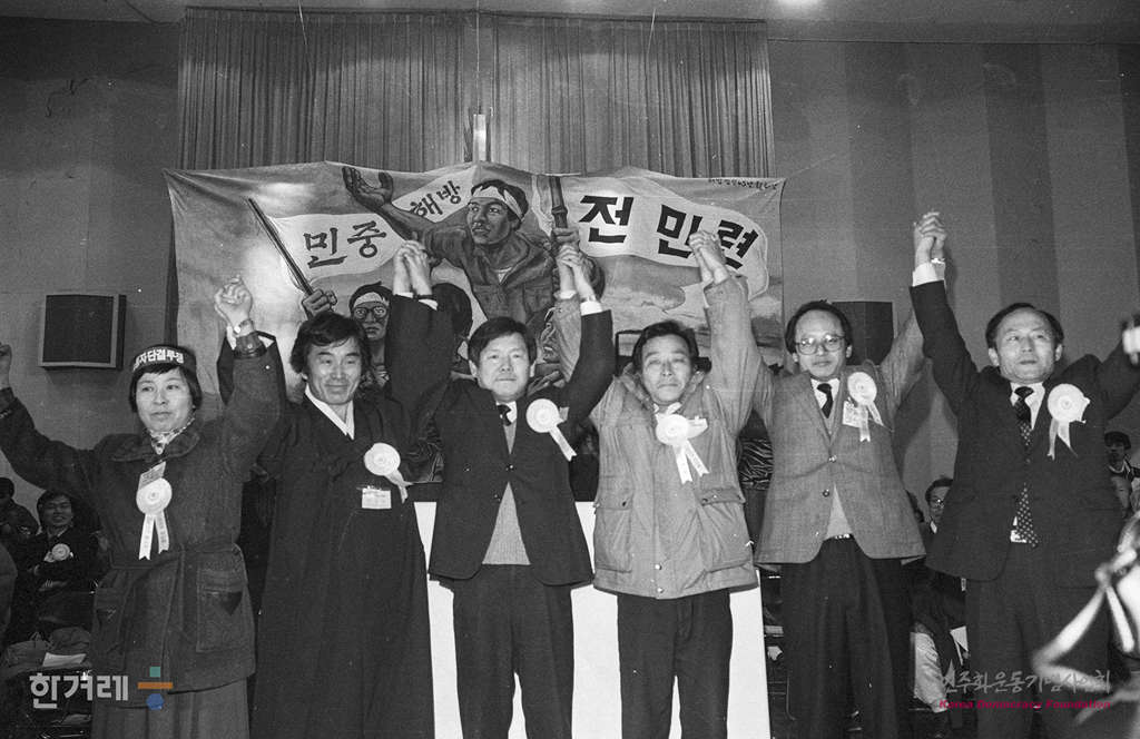 - 1989년 1월 21일 오후2시 재야 민족민주운동세력의 전국통합조직인 전국민족민주운동연합(전민련)이 서울 연세대 대강당에서 결성대회를 갖고 정식출범하고 있다. 서울민족민주운동협의회 등 지역통합단체 12개와 전국노동운동단체협의회 등 부문통합단체 8개등 모두 20갸의 참가단체로 출범한 전민련은 2백여개의 개별운동단체를 포괄하고 있어 건국이후 최대규모의 재야통합단체로 평가되고 있다.