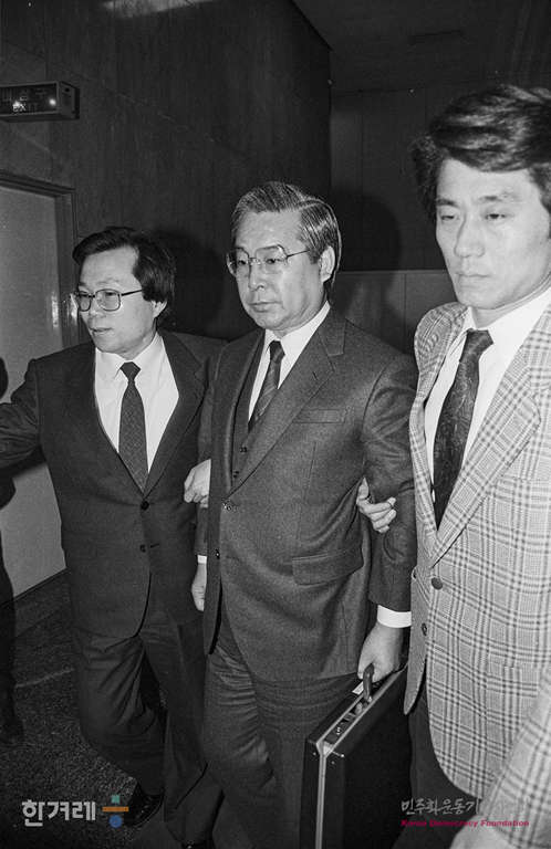 - 1989년 1월 27일 검찰 5공비리 특별수사부는 연이틀에 걸친 밤색조사 끝에 직권남용 등 혐의로 구속영장이 발부된 장세동 전 안기부장을 구속 수감했다. 사진은 수사를 마친 장씨가 검찰수사관들에 이끌려 서울구치소로 떠나고 있다.