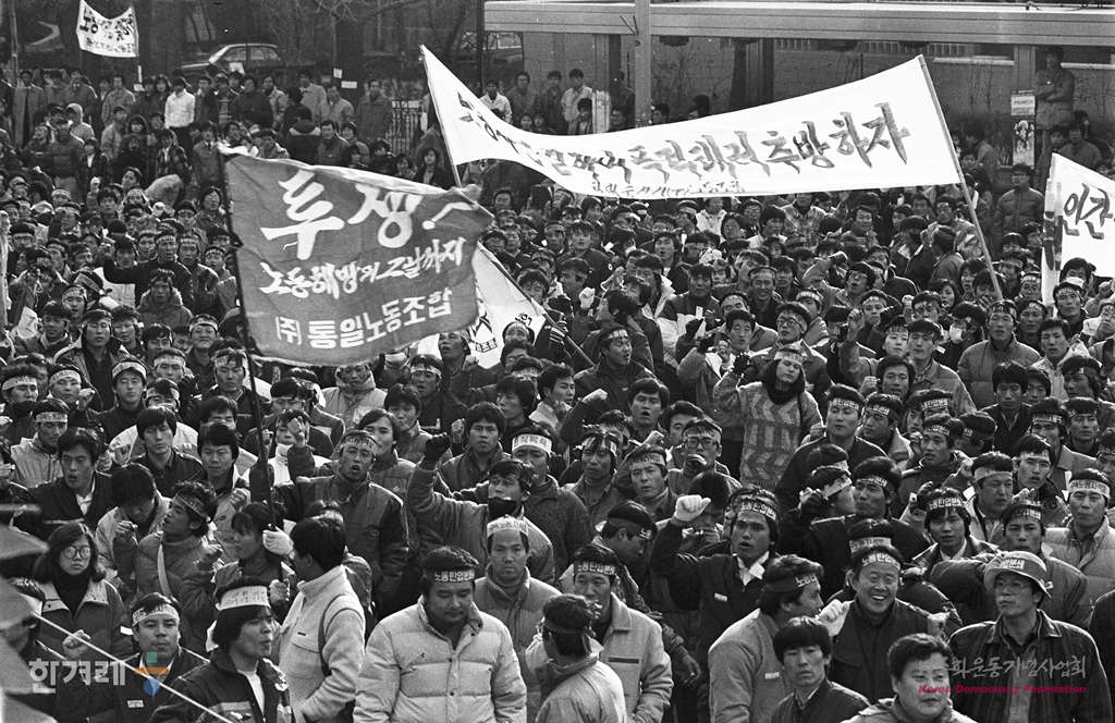 - 1989년 1월 29일 전국금속노동조합연맹 소속 노동자 1만여명과 서울지역총학생회연합 소속학생 2천여명은 서울 동숭동 대학로에서 노동탄압 분쇄 및 89년 임금인상투쟁 승리를 위한 전국결의대회를 가진 뒤 서울 중구 태평로 삼성본관앞으로 몰려가 삼성그룹 노조탄압 규탄집회를 가진 뒤 자신해산했다.