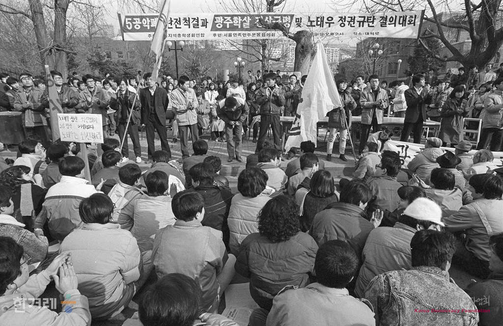 - 1989년 1월 29일 전국금속노동조합연맹 소속 노동자 1만여명과 서울지역총학생회연합 소속학생 2천여명은 서울 동숭동 대학로에서 노동탄압 분쇄 및 89년 임금인상투쟁 승리를 위한 전국결의대회를 가진 뒤 서울 중구 태평로 삼성본관앞으로 몰려가 삼성그룹 노조탄압 규탄집회를 가진 뒤 자신해산했다.