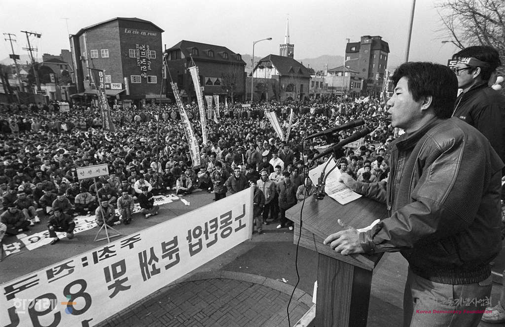 - 1989년 1월 29일 전국금속노동조합연맹 소속 노동자 1만여명과 서울지역총학생회연합 소속학생 2천여명은 서울 동숭동 대학로에서 노동탄압 분쇄 및 89년 임금인상투쟁 승리를 위한 전국결의대회를 가진 뒤 서울 중구 태평로 삼성본관앞으로 몰려가 삼성그룹 노조탄압 규탄집회를 가진 뒤 자신해산했다.