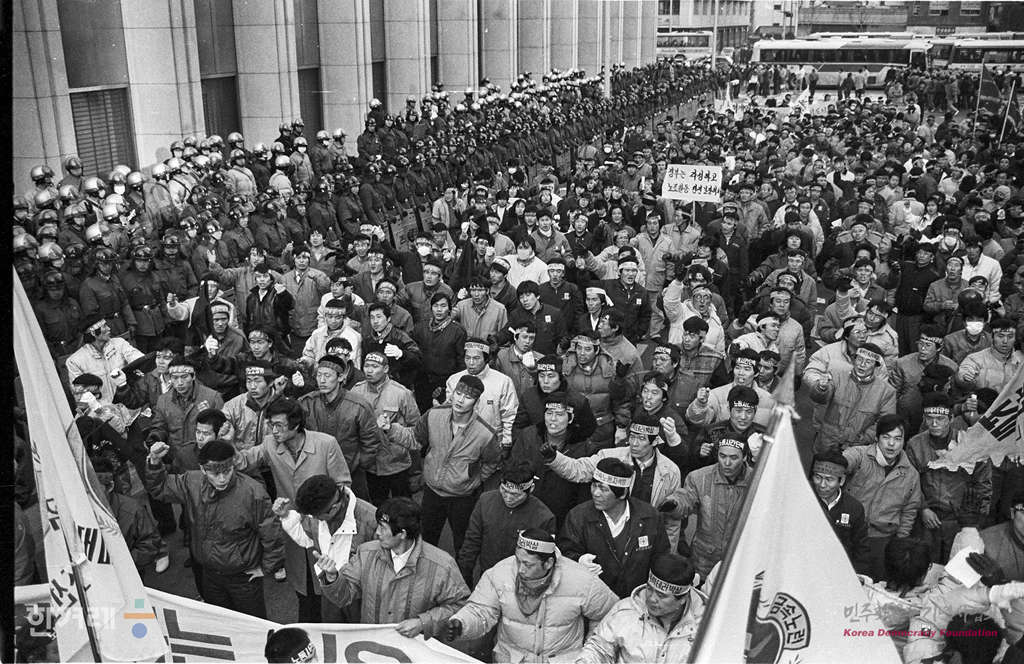 - 1989년 1월 29일 전국금속노동조합연맹 소속 노동자 1만여명과 서울지역총학생회연합 소속학생 2천여명은 서울 동숭동 대학로에서 노동탄압 분쇄 및 89년 임금인상투쟁 승리를 위한 전국결의대회를 가진 뒤 서울 중구 태평로 삼성본관앞으로 몰려가 삼성그룹 노조탄압 규탄집회를 가진 뒤 자신해산했다.