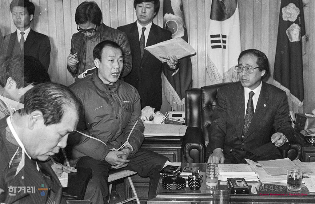 - 1989년 1월 17일 국회 노동위 현대테러사건 조사반은 울산경찰서 서장실에서 정보 대공과장 등 경찰 관계자와 수감중인 행동총책 이윤섭(제임스리)와 한유동 현대중공업 전무 그리고 현대중공업 노동자 정수철씨를 등을 불러 경찰과 회사쪽의 사전모의 혐의와 관련해 신문을 하고 있다.