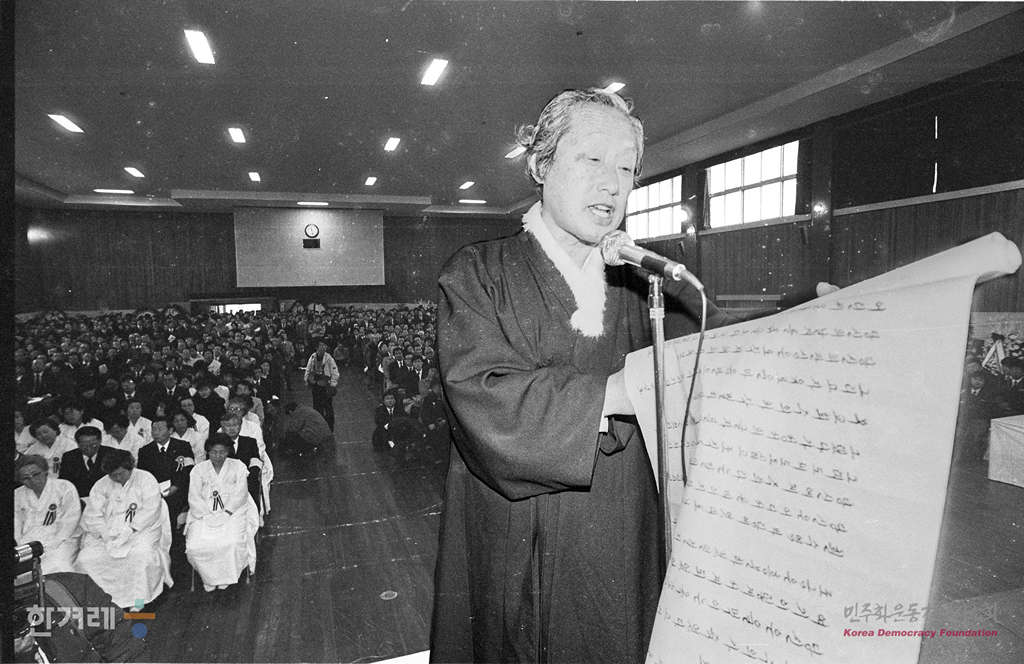 - 1989년 2월 8일 오전 10시 고 함석헌선생의 영결식이 모교인 서울 용산구 보광동 오산고 강당에서 오산학교장으로 열려 정부 및 정계인사들과 김수환추기경을 비롯한 문익환 계훈씨씨등 각계인사들과 학생 2천여명이 참석한 가운데 열리고 있다.