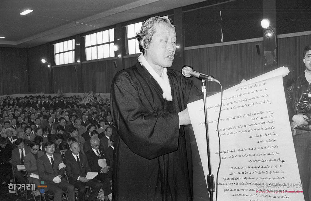 - 1989년 2월 8일 오전 10시 고 함석헌선생의 영결식이 모교인 서울 용산구 보광동 오산고 강당에서 오산학교장으로 열려 정부 및 정계인사들과 김수환추기경을 비롯한 문익환 계훈씨씨등 각계인사들과 학생 2천여명이 참석한 가운데 열리고 있다.