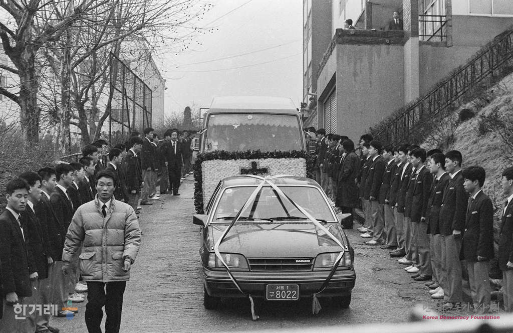 - 1989년 2월 8일 오전 10시 고 함석헌선생의 영결식이 모교인 서울 용산구 보광동 오산고 강당에서 오산학교장으로 열려 정부 및 정계인사들과 김수환추기경을 비롯한 문익환 계훈씨씨등 각계인사들과 학생 2천여명이 참석한 가운데 열리고 있다.