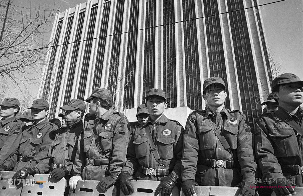 - 1989년 2월 10일 전국 대학교 교련교관들이 대학교 군사교육 과목이 폐지됨에 따라 서울 정부종합청사앞에서 교련폐지 반대를 주장하며 시위를 벌이고 있다.