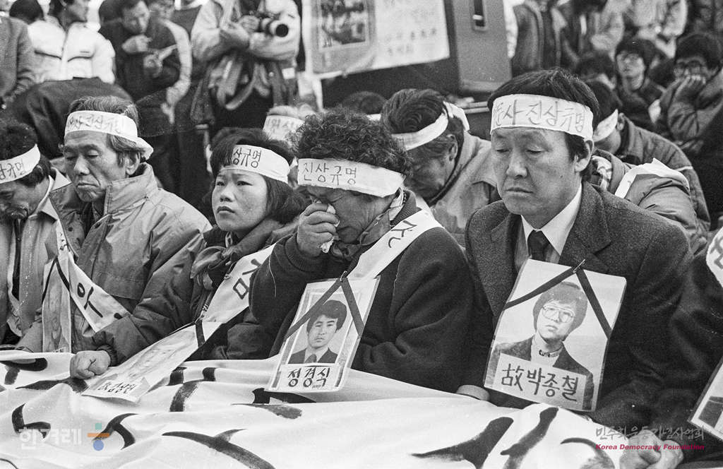 - 1989년 2월 11일 오후3시 민주화실천가족운동협의회 민주화운동유가족협의회 산하 의문사진상규명대책위원회 회원 및 시민 학생 1천 2백여명은 서울 명동성당입구에서 의문사진상규명과 광주학살 5적 처단을 위한 시민 결의대회를 갖고 가두행진을 시도했으나 경찰의 저지로 무산되었다.