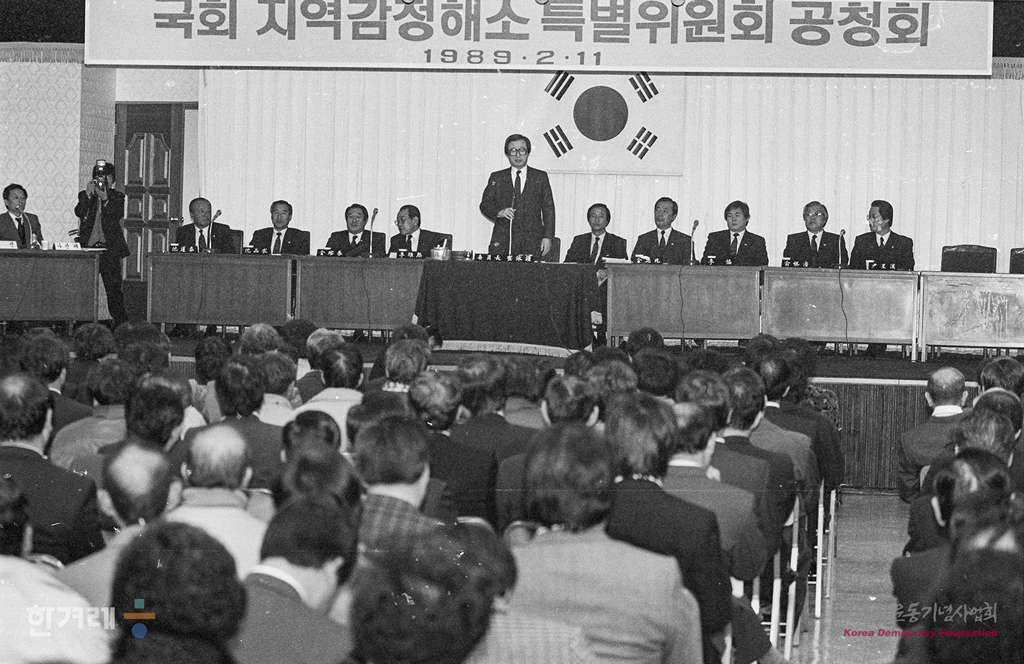 - 1989년 2월 10일 국회 지역감정해소특위는 대구 시민회관에서 5벽여명의 시민이 참석한 가운데 지역감정 해소방안을 듣는 공청회를 갖고 있다.