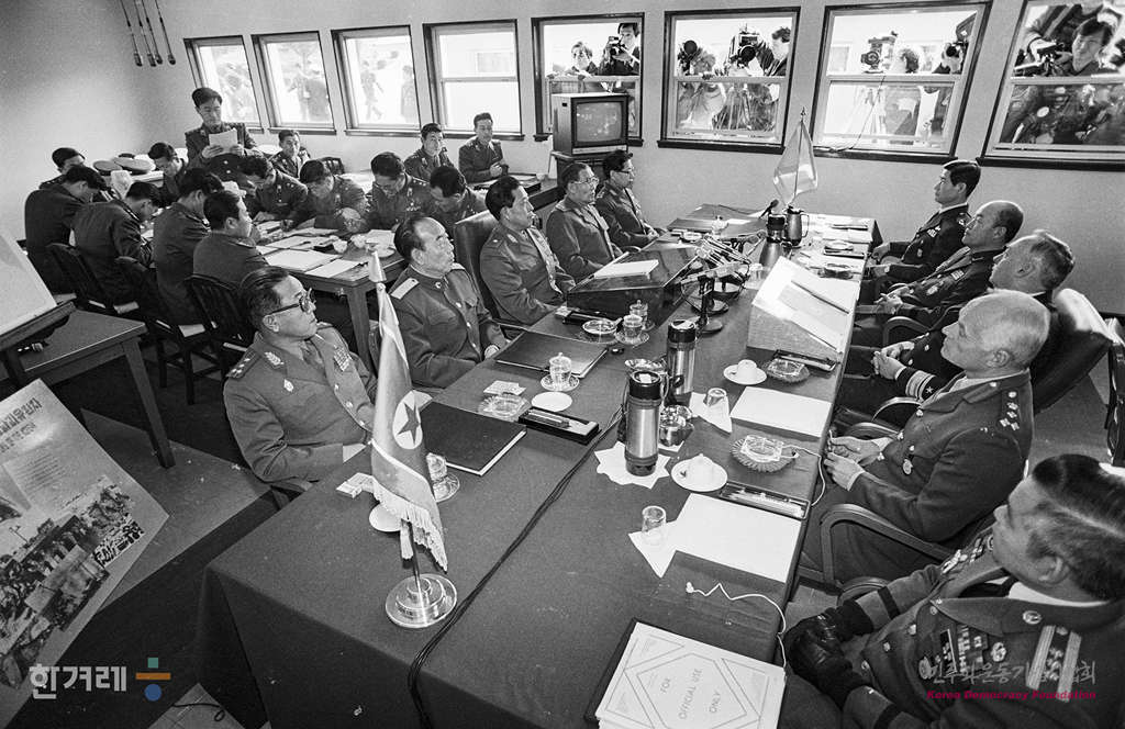 - 1989년 2월 13일 제446차 군사정전위원회 본회의가 판문점 공동경비구역안 회의장에서 열려 팀스프리트훈련과 관련해 의견대립을 하고 있다.