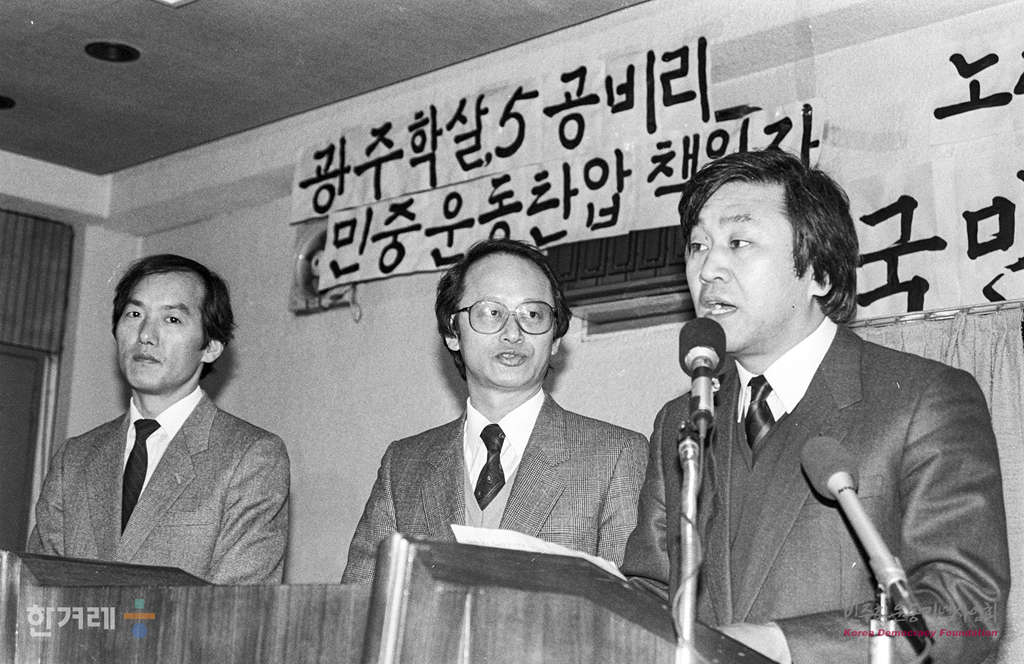 - 1989년 2월 17일 전국민족민주운동연합은 서울 중구 명동 향린교회에서 노태우 대통령 취임 1주년과 부시 미 대통령의 방한을 맞아 18일부터 27일가지 광주학살 5공비리 민중생존권 탄압 책임자 노태우 부시 규탄 국민투쟁기간으로 설정하고 각종 국민대회와 시위를 벌이기로 했다며 기자회견을 하고 있다.