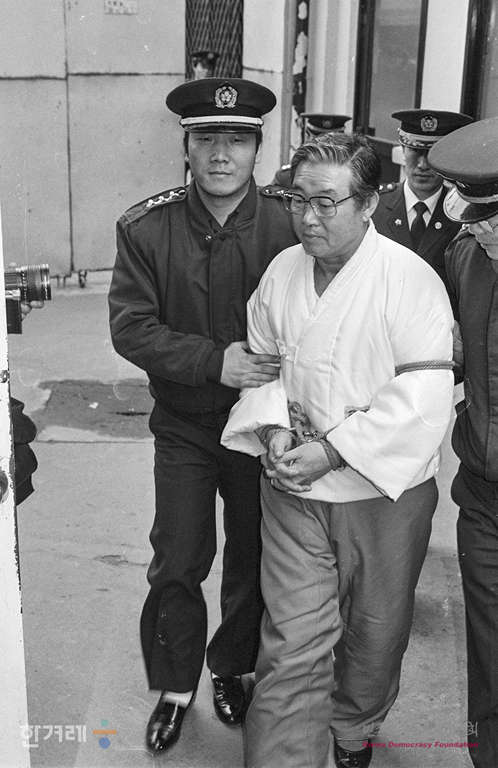 - 1989년 2월 17일 노량진수산시장 운영권 강탈혐의로 구속기소된 전두환씨의 친형 전기환씨와 회사돈을 빼돌리고 탈세한 혐의로 구속기소된 전두환씨의 처남 이창석씨의 첫 공판을 받기 위해 서울지법 남부지원 법정으로 들어서고 있다.
