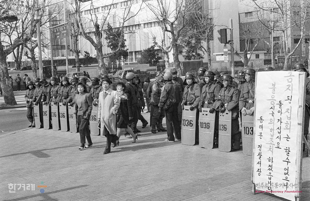 - 1989년 2월 18일 전민련이 18일부터 27일가지 설정한 광주학살 5공비리 민중생존권 탄압책임자 노태우 부시규탄 국민투쟁기간의 첫집회인 서울 종로구 동숭동 대학로에서 열기로 한 서울민족민주운동협의회 및 서총련 주최 서울시민결의대회가 경찰의 강경한 원천봉쇄로 열리지 못하자 시민 학생 노동자들은 행사장 근처에서 검문검색과 원천봉쇄에 항의하는 시위가 벌어졌다.