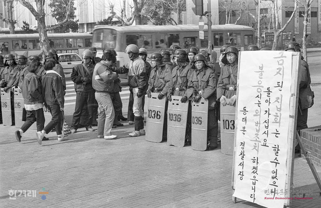 - 1989년 2월 18일 전민련이 18일부터 27일가지 설정한 광주학살 5공비리 민중생존권 탄압책임자 노태우 부시규탄 국민투쟁기간의 첫집회인 서울 종로구 동숭동 대학로에서 열기로 한 서울민족민주운동협의회 및 서총련 주최 서울시민결의대회가 경찰의 강경한 원천봉쇄로 열리지 못하자 시민 학생 노동자들은 행사장 근처에서 검문검색과 원천봉쇄에 항의하는 시위가 벌어졌다.