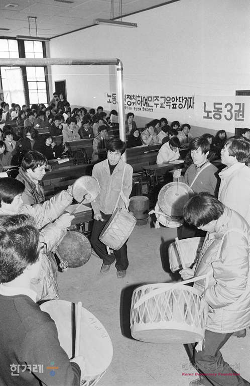 - 1989년 2월 19일 전국교사협의회가 서울 단국대 학생극장에서 전체대의원대회를 열고 교원노조 건설을 만장일치로 의결하고 있다.